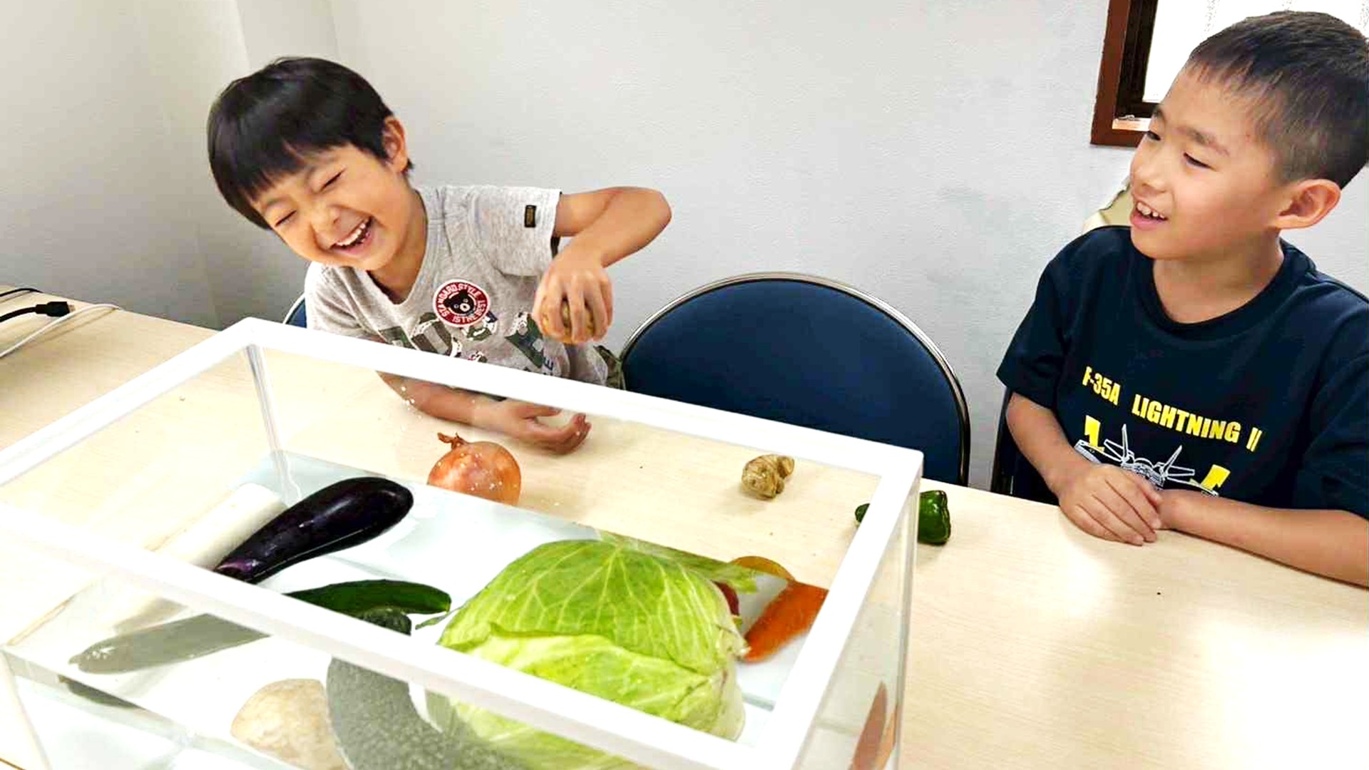 さまざまな野菜を水槽にいれて、浮くものと沈むものに分けよう!浮く野菜と沈むやさい、それぞれどんな特徴があったかな?